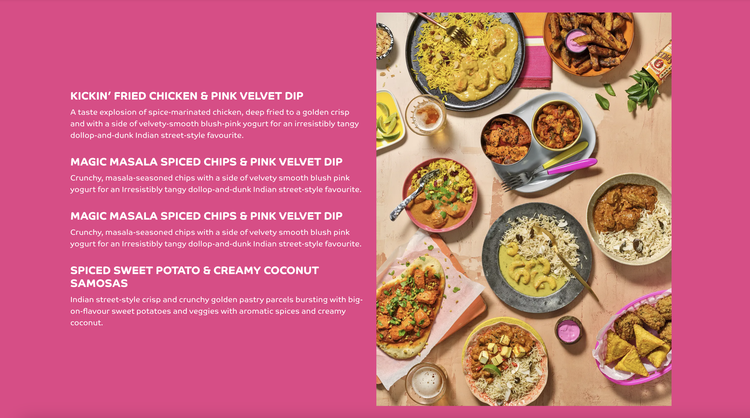 Pinch successfully launched in Tesco with a range of 12 dishes, from Railway Lamb Curry to Magic Masala Spiced Chips with a Pink Velvet Dip. The brand stands out on shelves with its distinctive personality and contemporary approach to Indian cuisine.